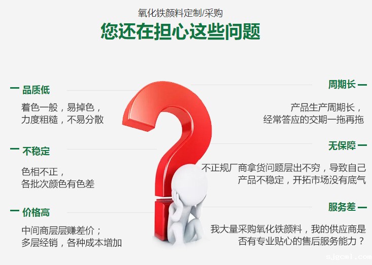 我公司采用先进的技术、科学的管理、本着质量就是生命,全心全意服务客户的认真原则,严把产品质量关口,让用户使用放心,满意,我公司销售的各个型号高纯度三氧化二铁、超微细氧化铁红、氧化铁黑、黄、红、绿、氧化铁脱硫剂达到并超出了国际标准“色漆用氧化铁颜料”的技术要求,产品质量稳定畅销全国并多次获得好评。